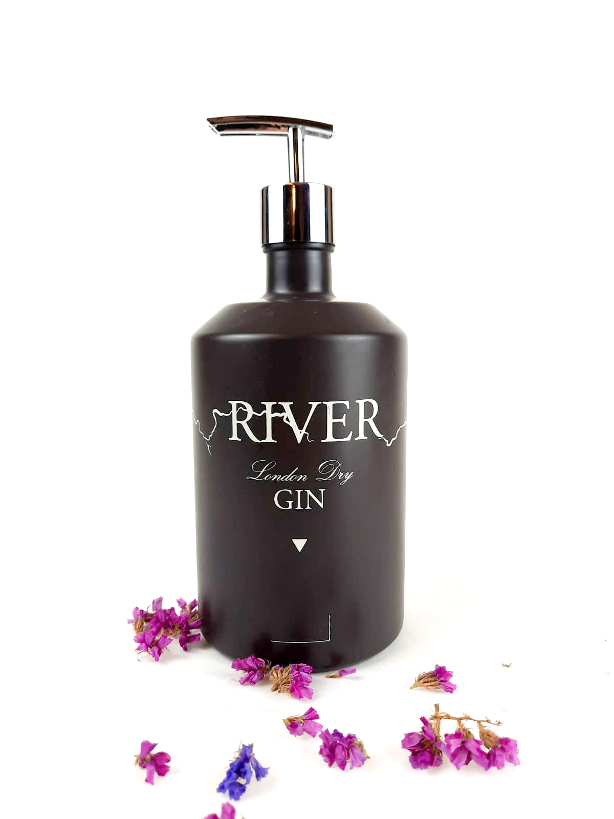 Portasapone realizzato da bottiglia di Gin River da 70cl.