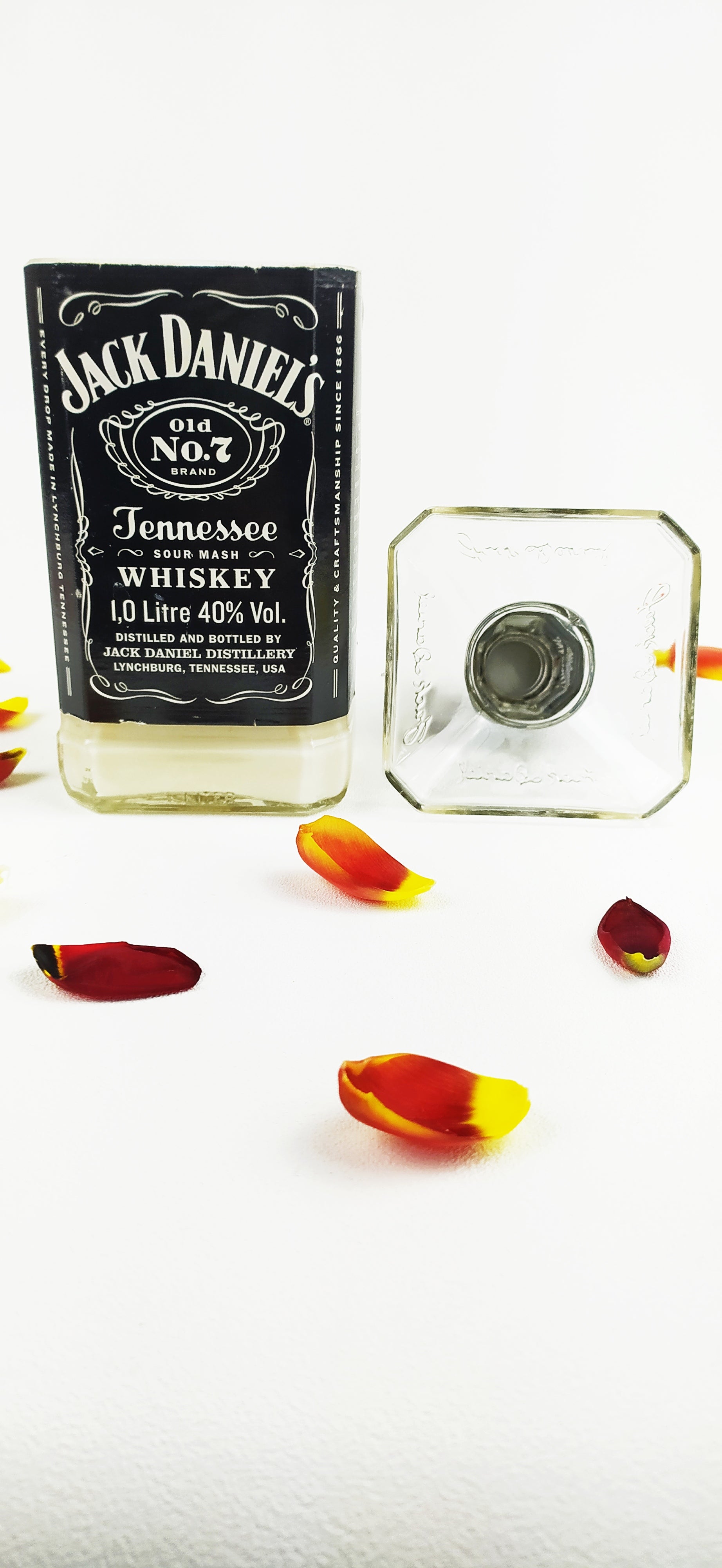 La bottiglie vuota una volta selezionata è stata accuratamente lavata, tagliata, levigata e lucidata con macchinari professionali per garantire l'assenza di bordi taglienti.