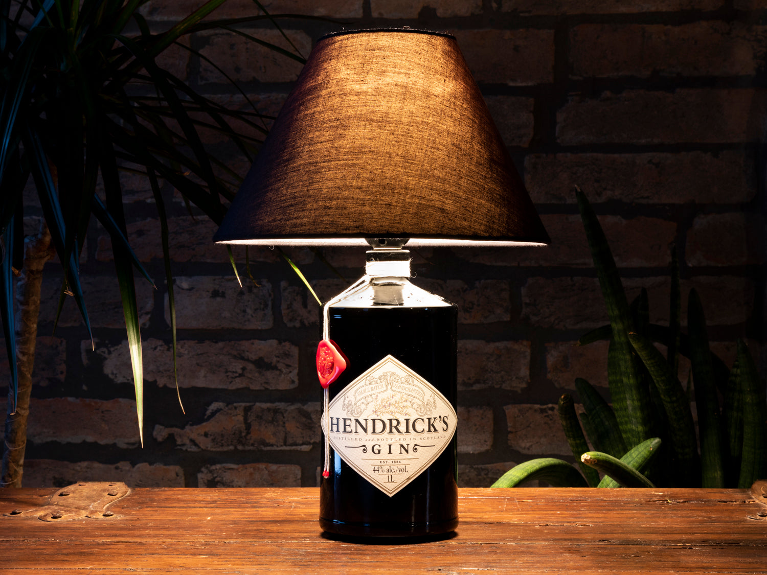 Lampada da tavolo realizzata da una bottiglia da 700cl di Gin.