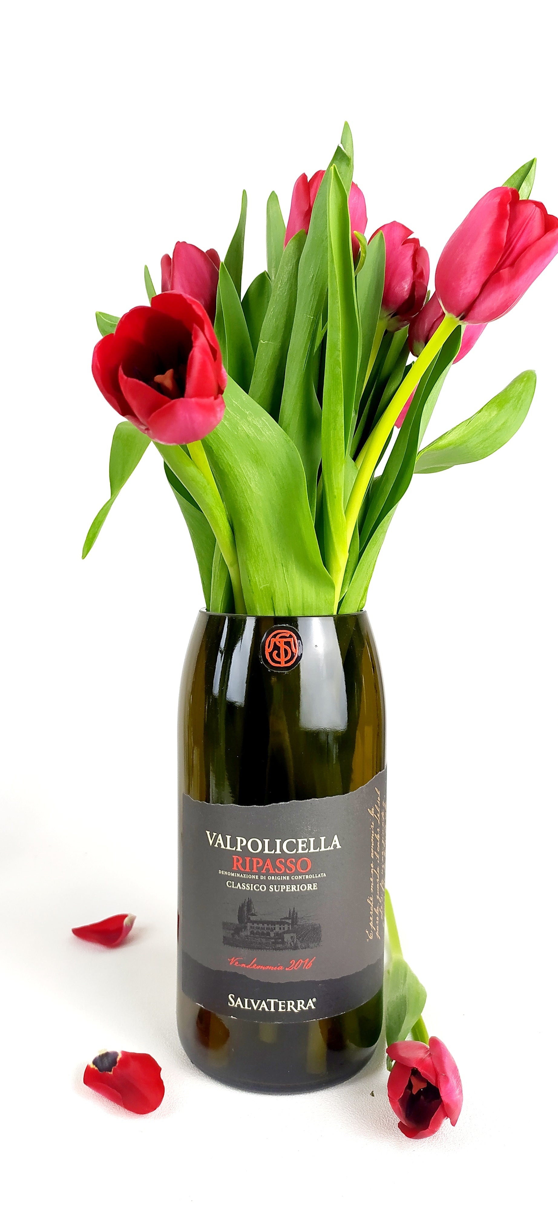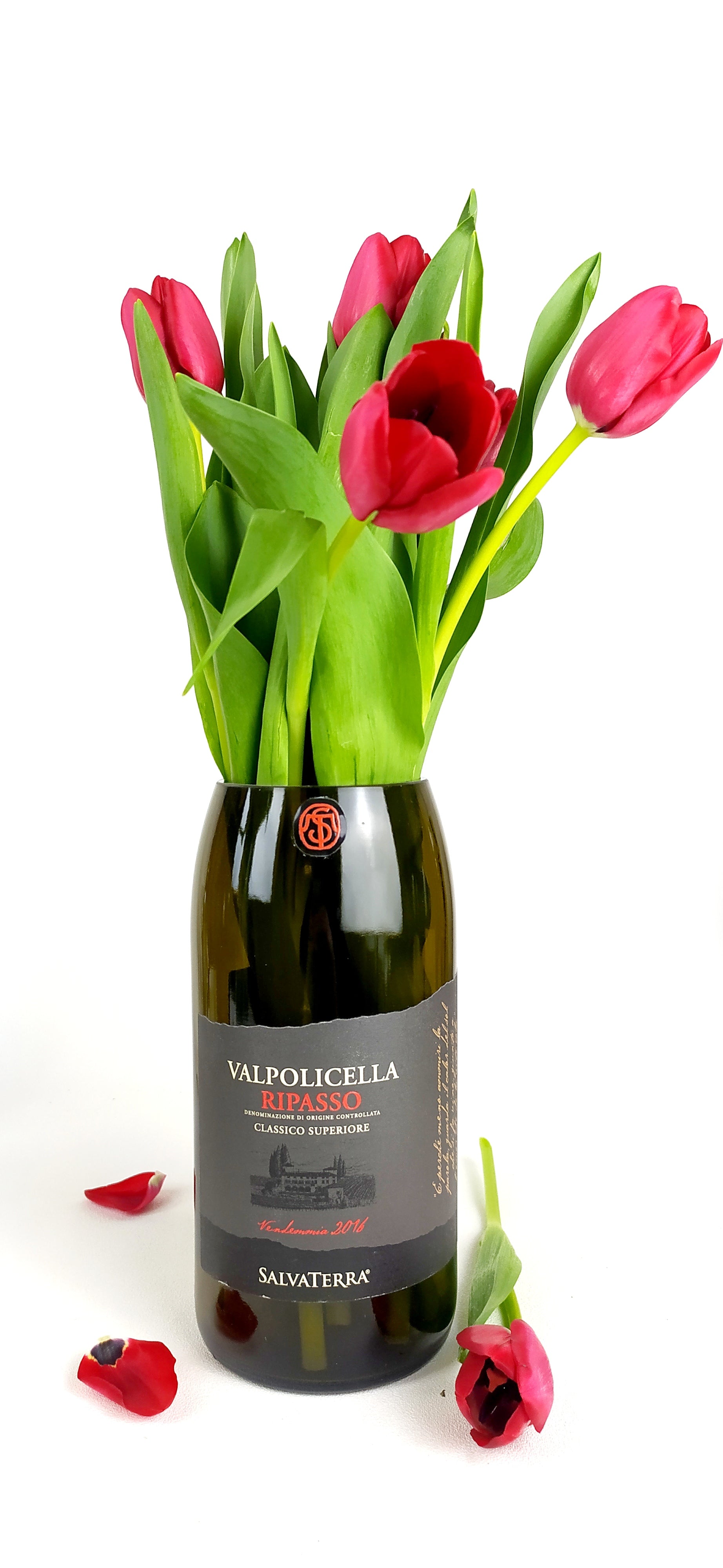 Vaso da fiori realizzato con bottiglia di Valpolicella Ripasso.